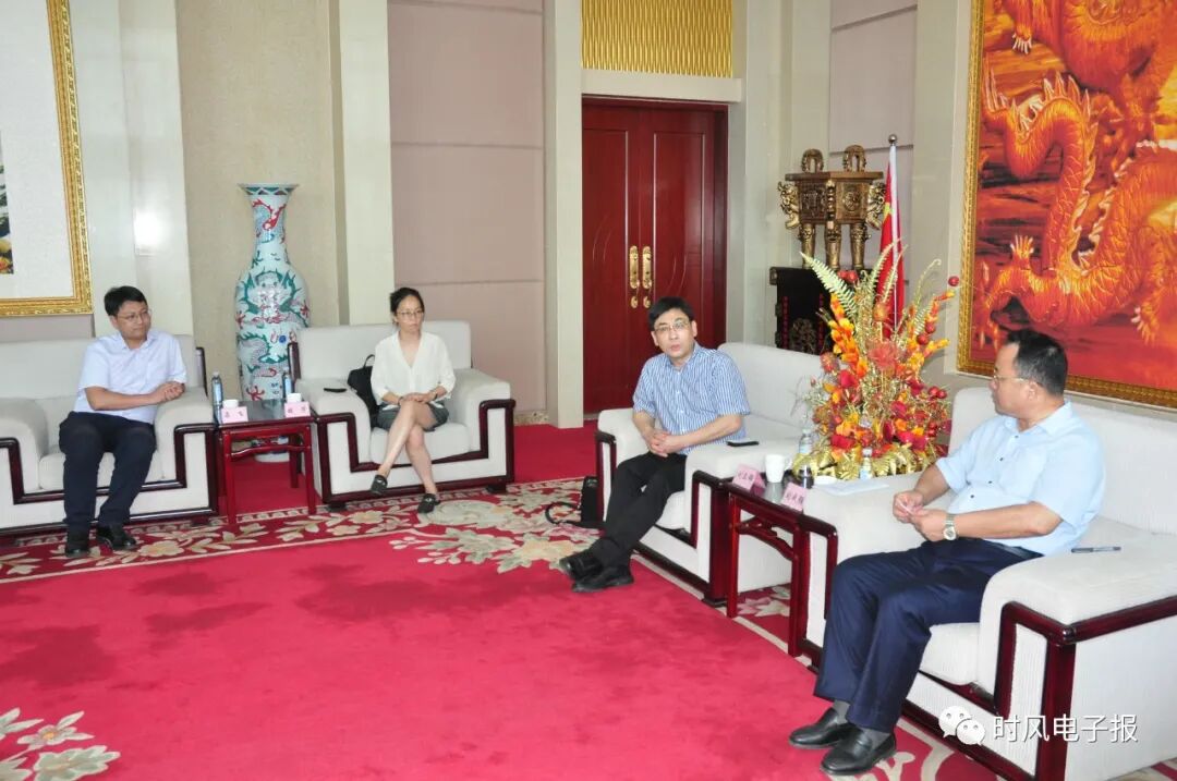 8月28日,国投创业投资管理有限公司总经理刘立群,投资总监楼芳,上海联适导航技术有限公司总经理马飞,山东区域销售总监李庆龙一行到时风集团考察。时风集团刘成强董事长,副总经理林连华、刘英亮等领导陪同。
